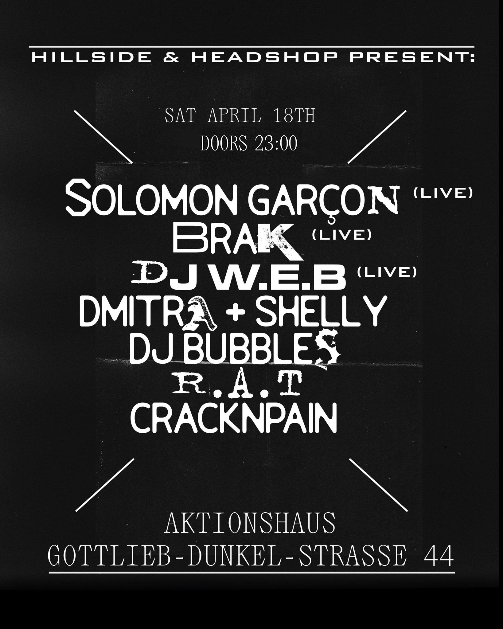 Headshop & Hillside present: DJ Bubbles, BRAK, Cracknpain, DMITRA + Shelly, Solomon Garçon, R.A.T., DJ W.E.B.